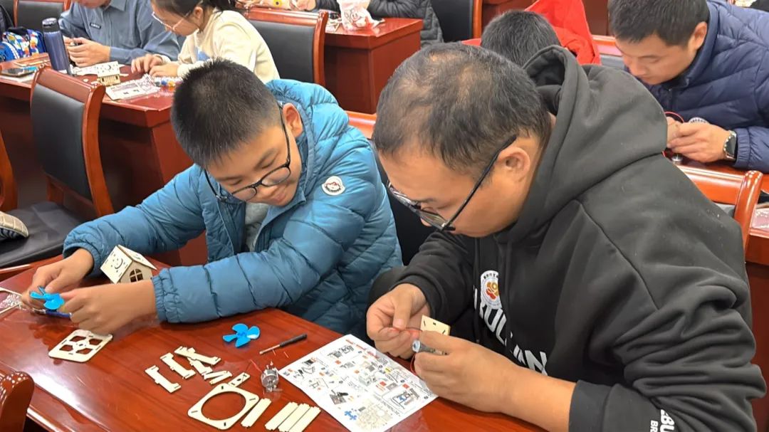 风能是一种清洁的可再生能源,可产生电能。活动通过带领亲子家庭制作风力发电小屋,探索风与电之间的奥秘。看到叶片轻轻旋转,小屋随之亮起,“绿能创客”们发出了惊叹。科技与环境和谐共生,引起了大家的思考。