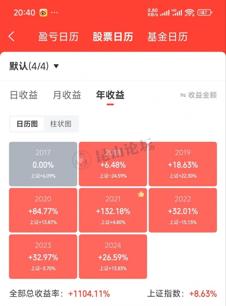 sysdzw:2024-10-14用50万入场,最高峰2024-12-6到64万,然后一路亏最后到48万,也就是用两个月赚14万,用20天又都亏回去了。当然了现在这支股今天涨了赚回来了三万,连跌了十几天真不容易。记住这是虚拟盘,玩玩而已没投入真感情,不然一翻操作肯定亏更多。建议爱玩股票的都看看二十年前 .. (2024-12-25 23:00)