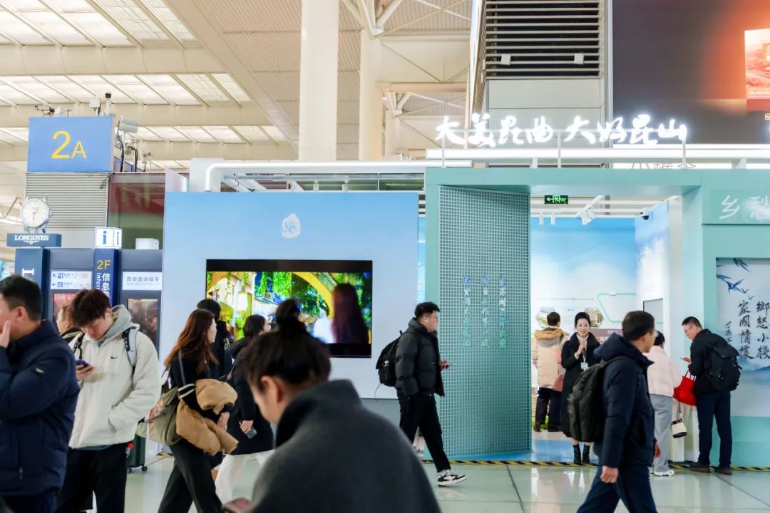 12 月 24 日,正值岁末暖冬,年味儿渐浓,上海虹桥高铁站旅客穿梭往来。值此契机,昆山千灯镇在出发层大厅2A检票口旁的乡愁小栈昆山城市展厅举办“何以生活 自在千灯”专场活动,向旅客推介千灯的文化古韵与现代活力。