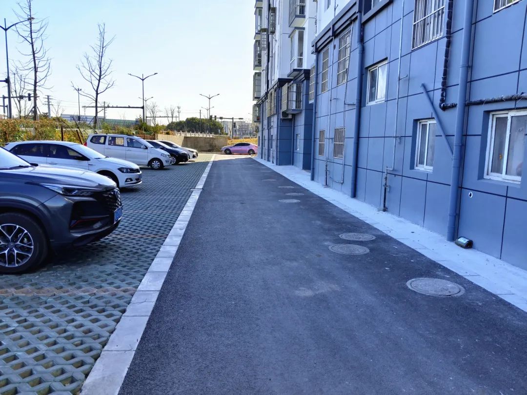 小区实施综合改造,新增停车位51个,改造停车位面积750平方米,改造道路面积约2350平米,同时对外立面进行更新,更换老旧单元门、车库门,并新建雨棚。