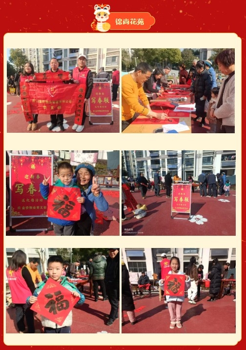 为深入学习贯彻党的二十大精神,弘扬民族文化,丰富社区群众文化生活,营造欢庆祥和的春节氛围。金侨物业党支部组织各项目开展了“迎新春、写春联、送祝福”和“温暖秋冬 翰墨贺春”活动,把新春的祝福送到小区业主手上。