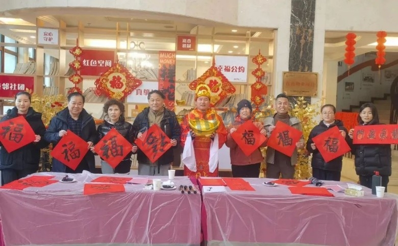 墨香飘溢,每笔皆寓意吉祥,如诗如画新年祝福在字里行间跃然呈现,为小区注入了艺术的瑰丽和美好的期许让欢庆氛围更添深厚底蕴。
