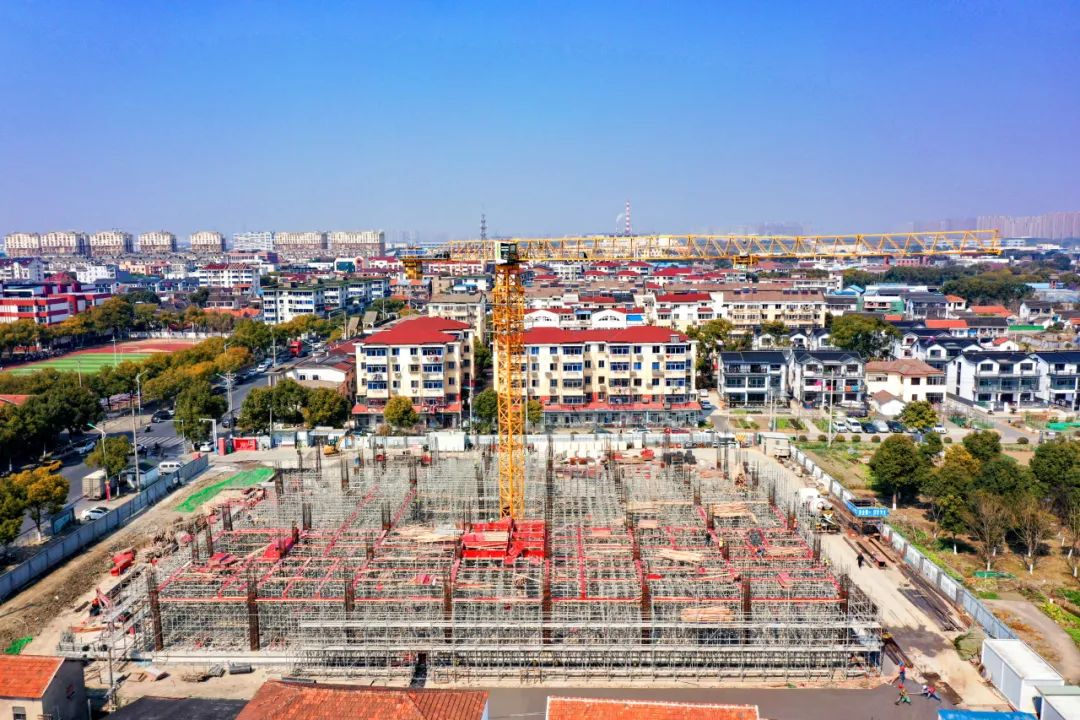 项目位于龙生路南侧、中泾江东侧,用地面积约71.67亩,建筑面积约5.6万平方米,办学规模为12轨36班。主要建设内容为教学楼、实验楼、图书馆、食堂、地下车库等。项目于2023年12月开工,目前3栋教学楼和体育馆主体封顶,完成总进度约54%。预计2026年6月完成建设。