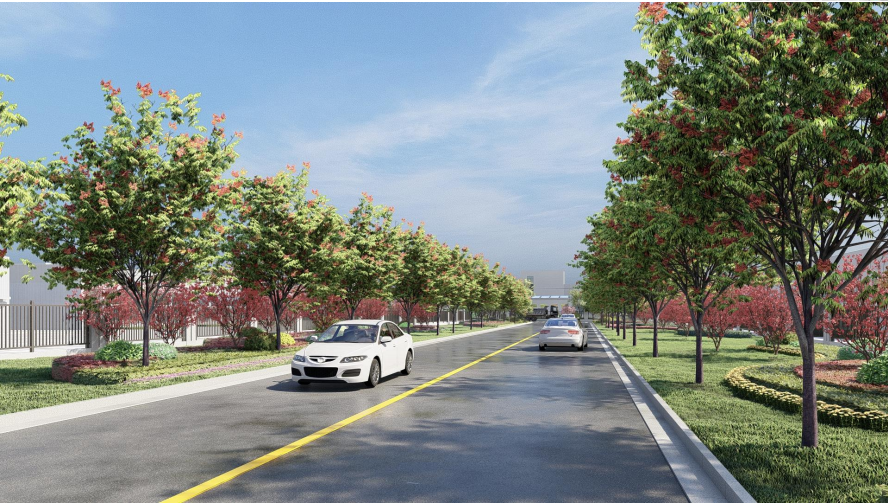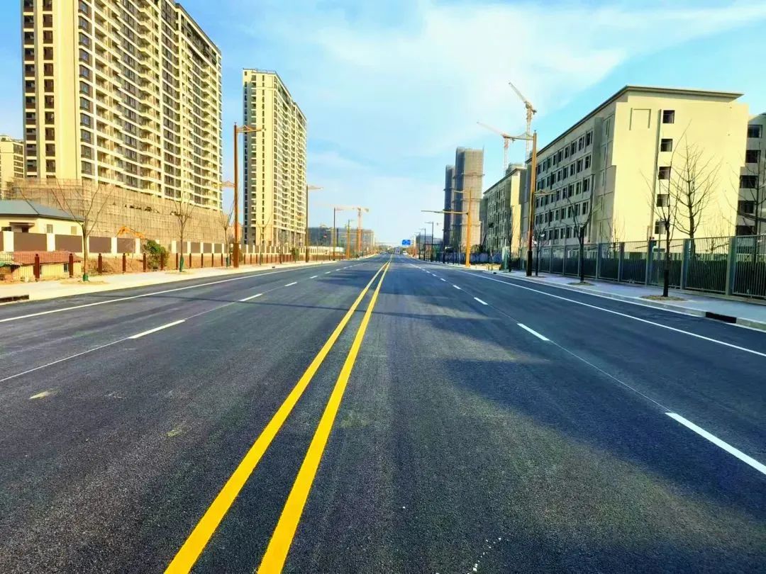 项目道路长度约936米,新建道路、桥梁、人行道板,同时新增绿化景观、交通标示标牌、路灯、综合杆线等。项目于2023年12月开工,目前已完成建设,即将投用。