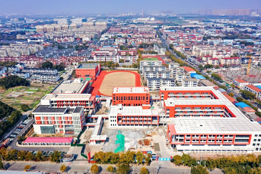 项目占地约65亩,总建筑面积约3.7万平方米,新建教学楼、实验楼、综合楼、食堂等,办学规模11轨33班。项目于2022年6月开工,一期工程已完成建设并于2024年投入使用。二期工程目前完成总进度约95%,预计2025年6月完成建设。