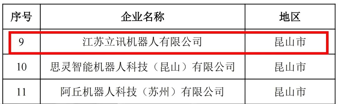 近日,苏州市工信局公示了苏州市具身智能机器人特色产业园、苏州市具身智能机器人高能级创新平台、苏州市具身智能机器人优质领航企业名单。锦溪企业江苏立讯机器人有限公司入围苏州市具身智能机器人优质领航企业