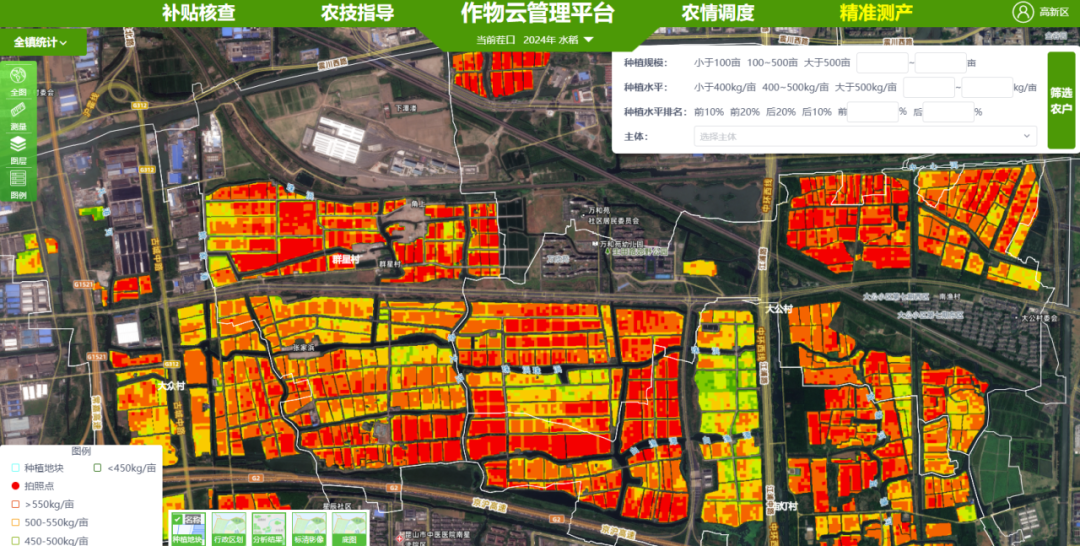 2024年昆山高新区被列入苏州市农业生产体系集成改革试点之一,并承担市级粮油规模种植主体单产提升项目。通过采用“遥感+AI+移动互联网”技术,加快农业数字化转型,完善农业生产体系。全面运用“作物云”平台,在2024年水稻季已依托该平台做到精准识别作物种类、精准核查面积,摸排全区生产能力数据,3家规模经营主体的水稻产量位居市级前列。2025年,小麦高产竞赛活动吸引了多家经营主体主动报名参与。