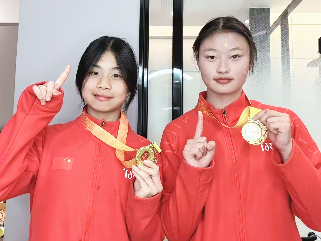 ▲两位选手在高科园小学训练时的剪影