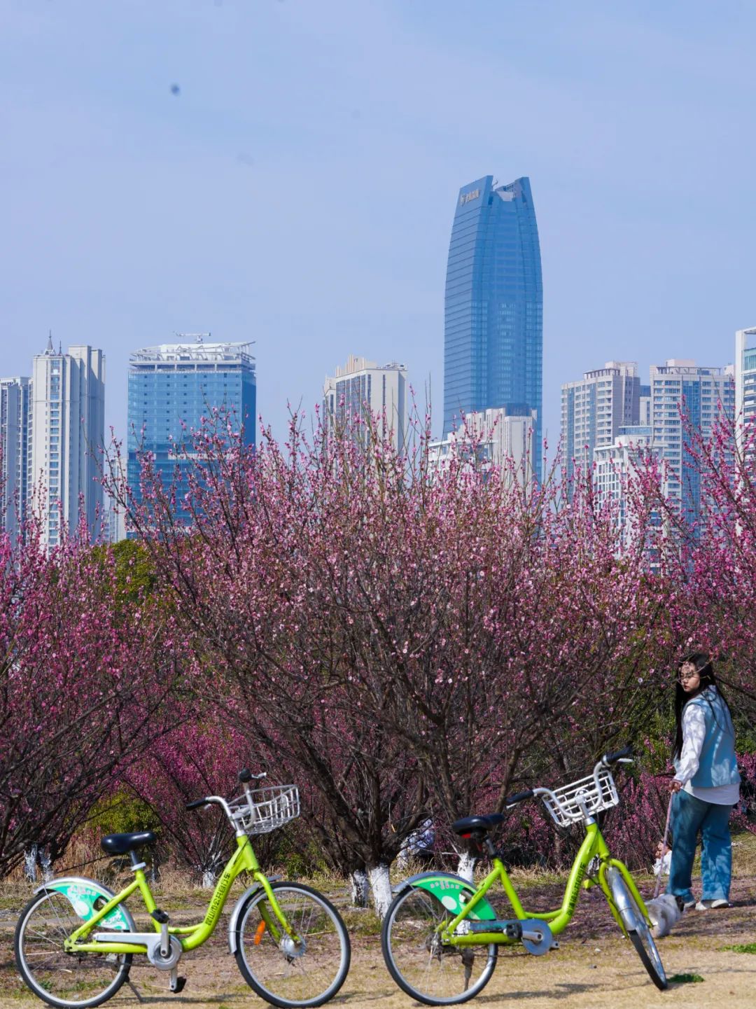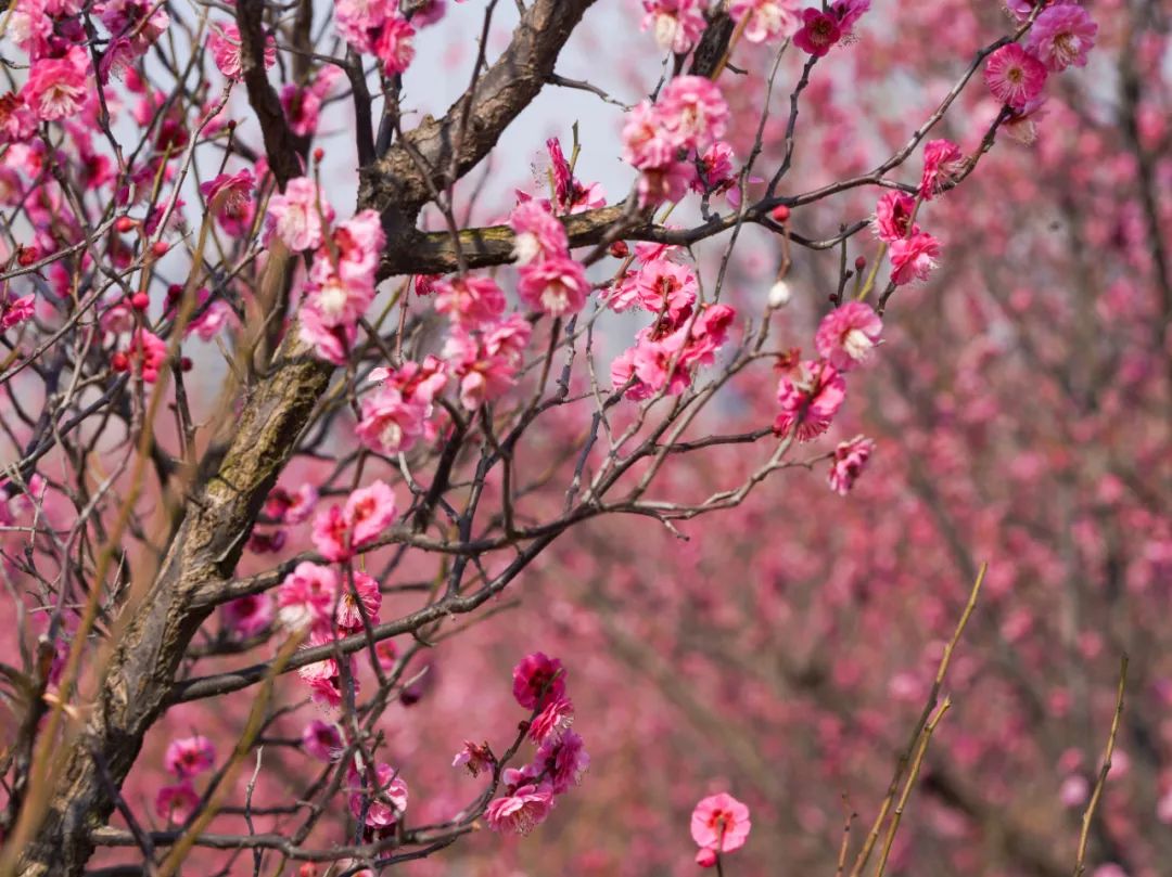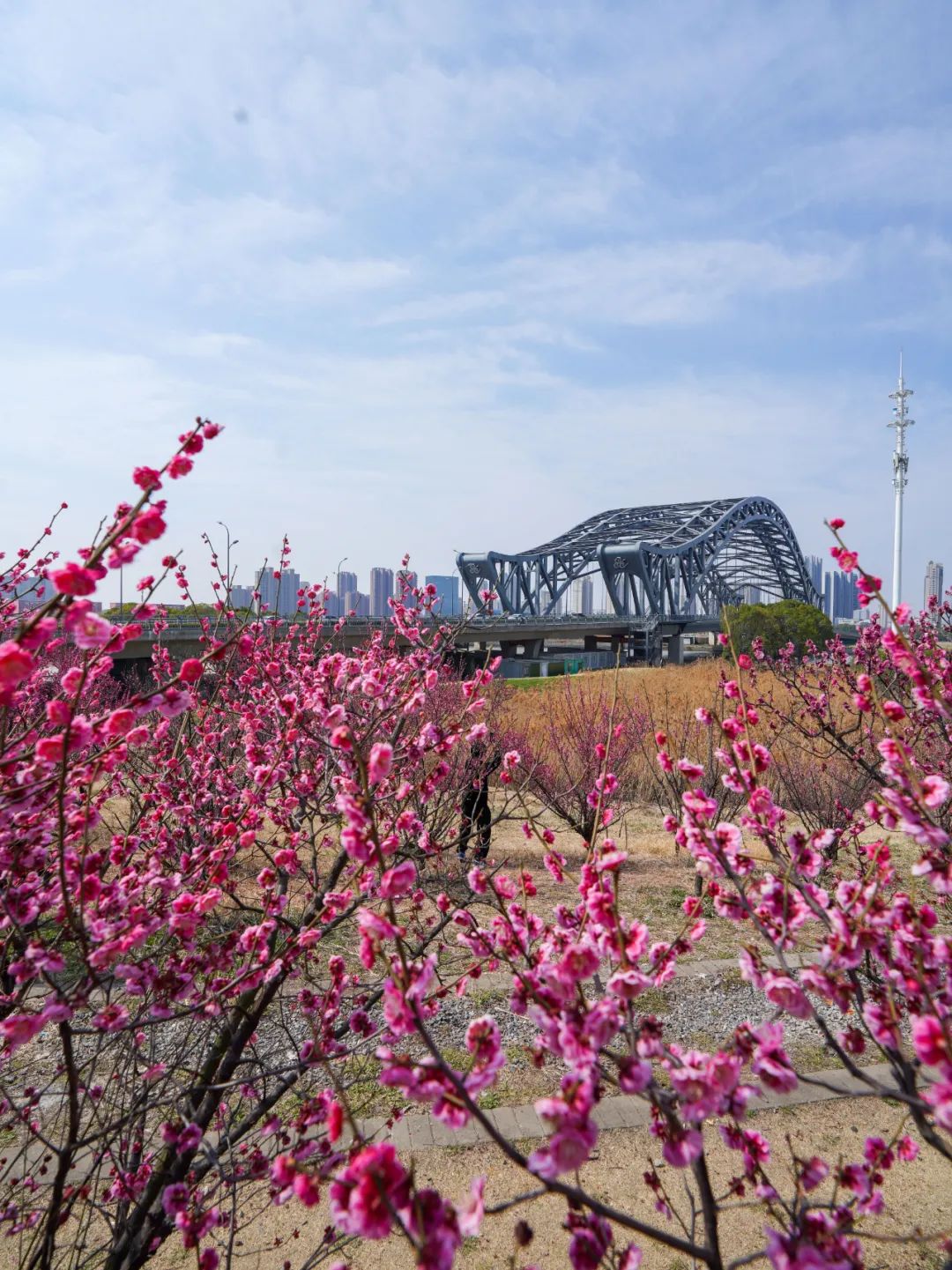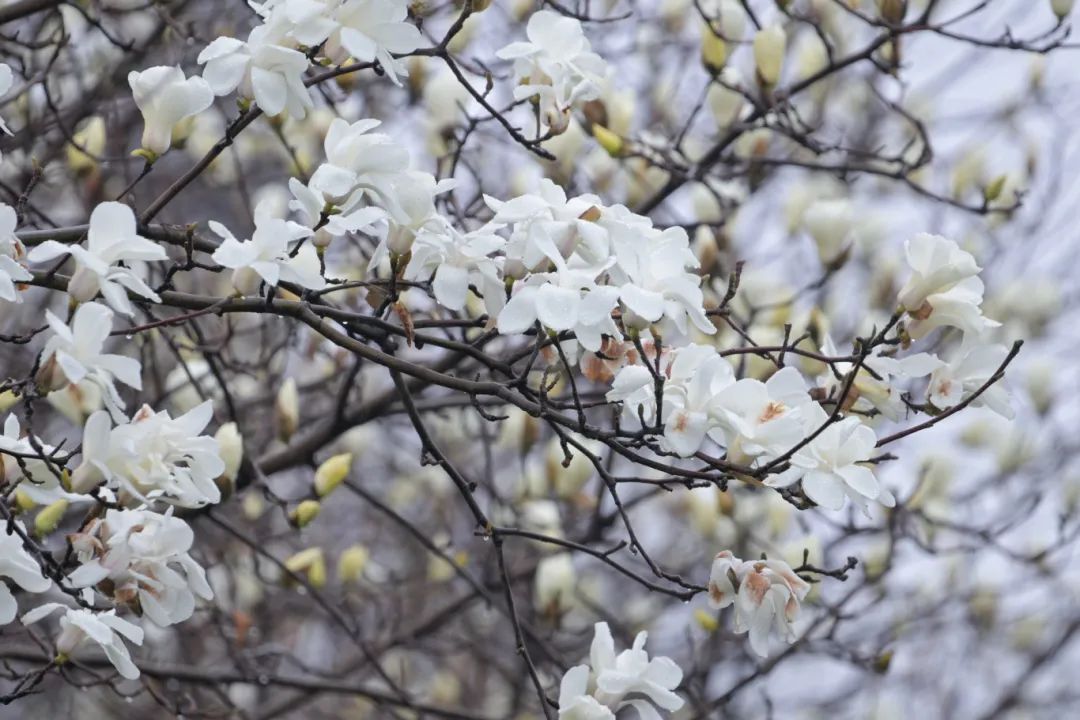 梅花盛放至3月中旬,白玉兰与紫叶李也已进入最佳观赏期,花期将持续至4月初。
