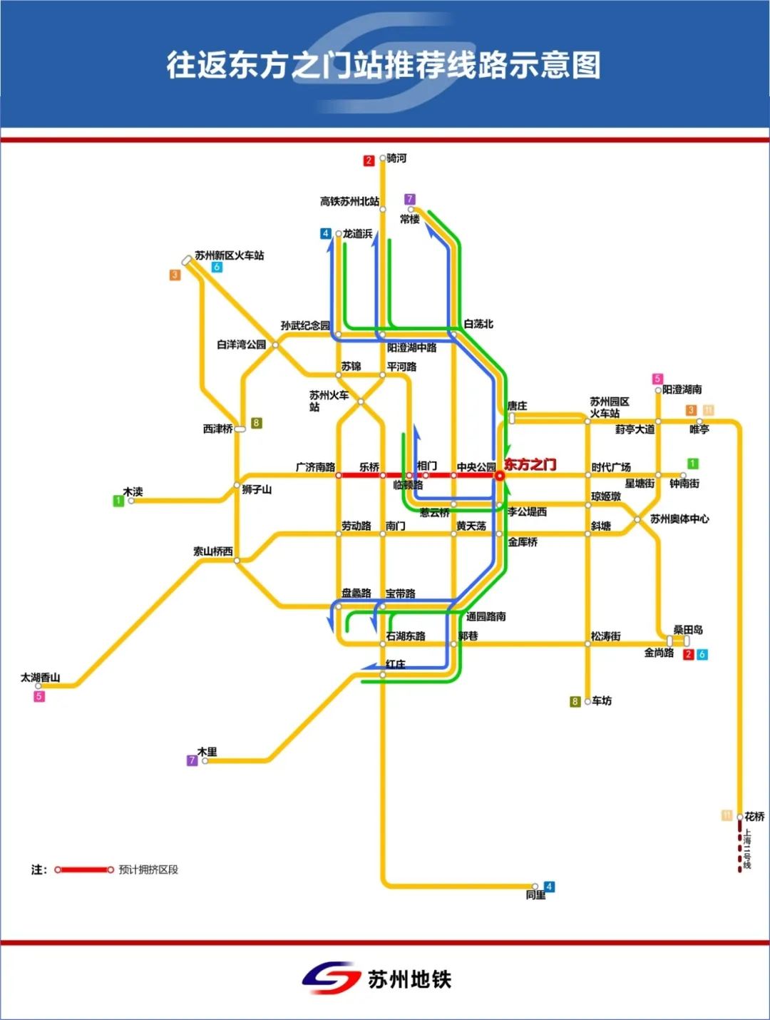 3.请乘客随时留意苏州地铁官方微博、“苏e行”APP及车站电子信息屏等发布的运营动态信息,合理规划出行路线,尽量选择避开拥堵路线。