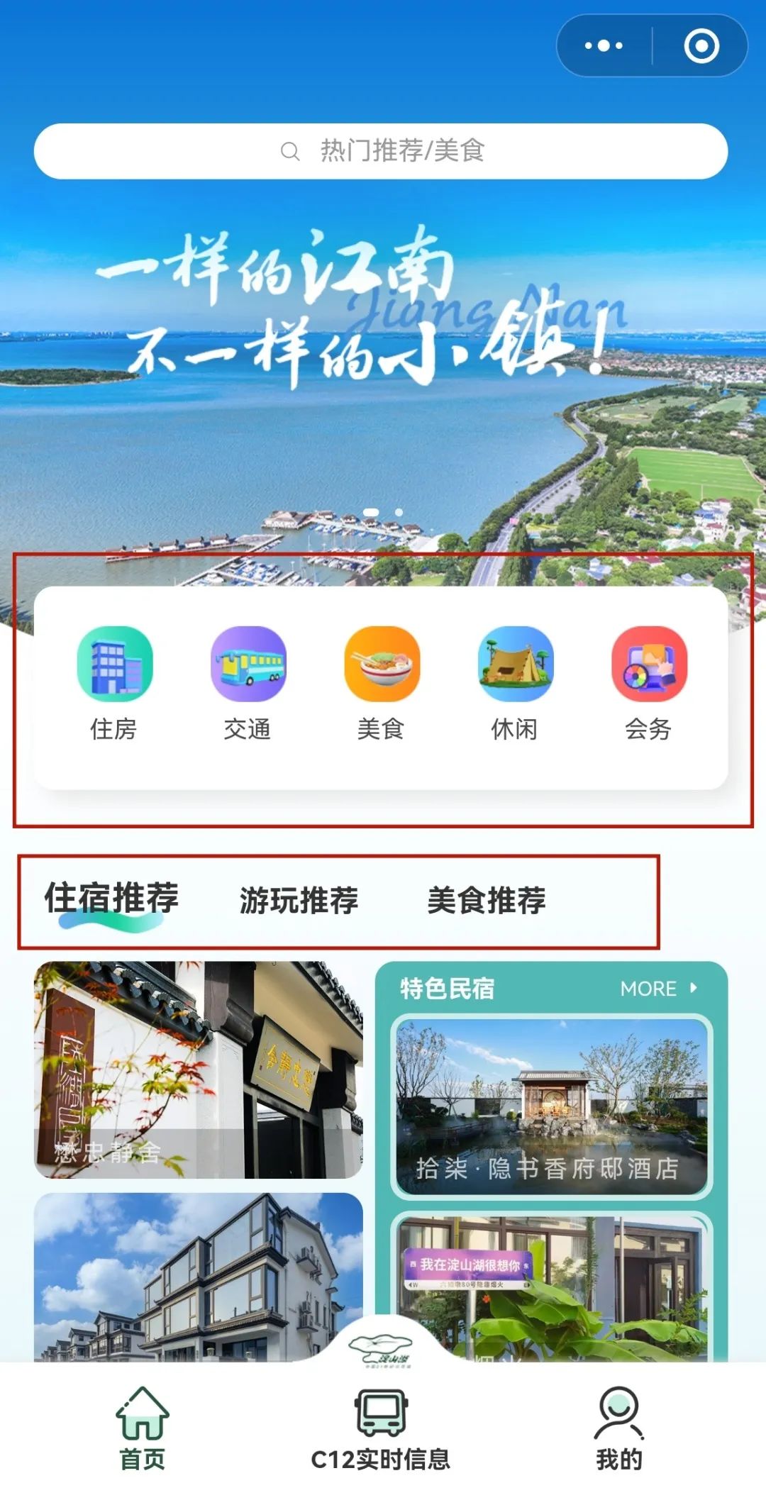 “乐活淀湖”小程序作为一个集“吃、住、行、游、娱、购”等要素于一体的综合性平台,直观展示淀山湖镇的丰富文化旅游资源与健全的公共设施服务,为大家提供更加便捷、个性化的旅游体验和生活服务。