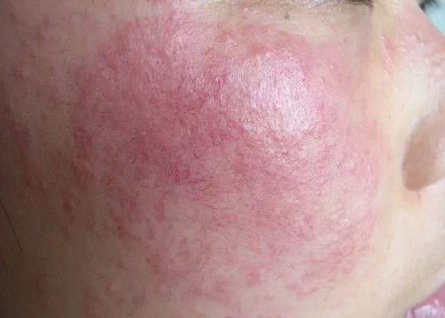 随后出现面部、腹部及大腿散在红斑和皮疹