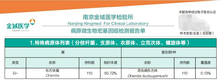 ▲经基因检测,患者确诊为“恙虫病”,经过专科治疗后,患者病情得到迅速缓解。