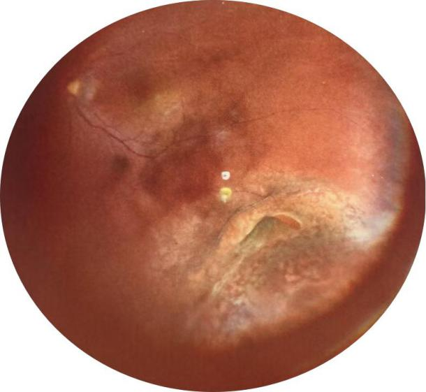 ▲FCB取出后,网膜复位良好、裂孔封闭良好