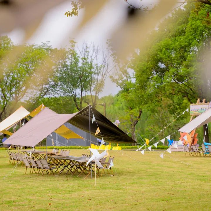 帐篷与天幕点缀花丛