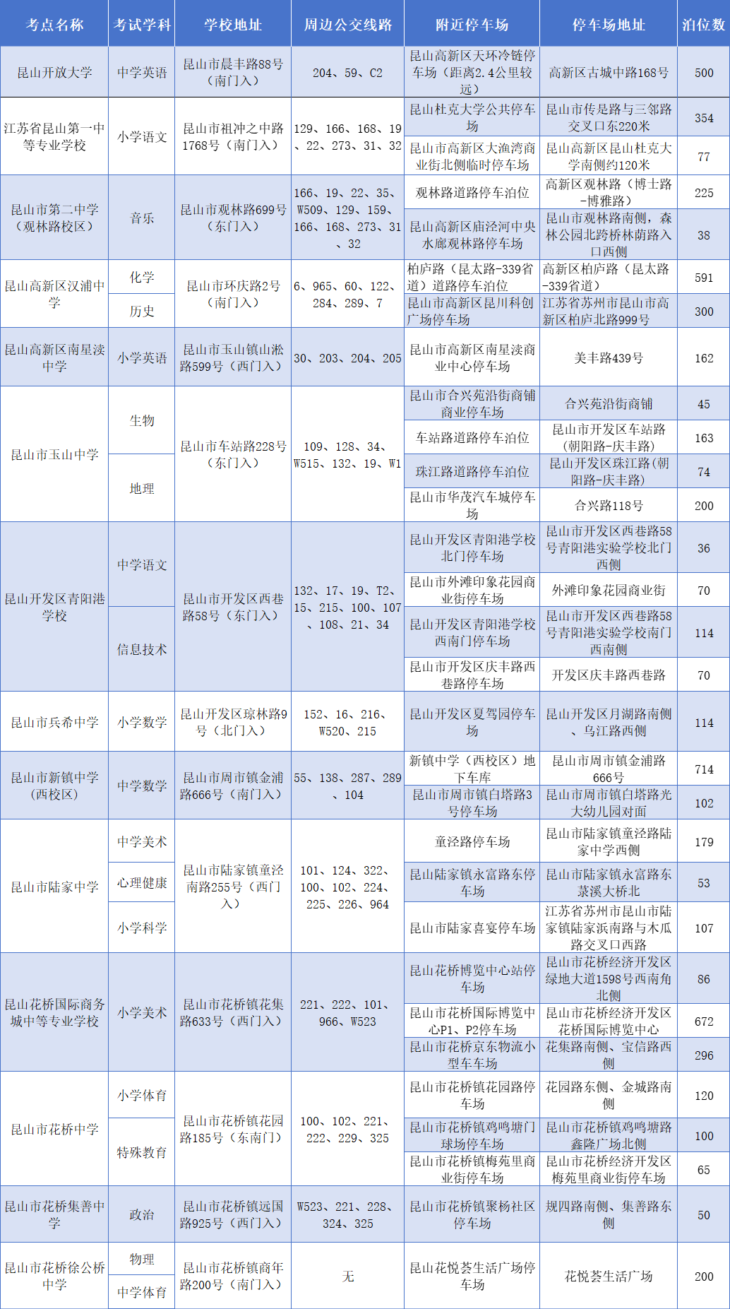3:昆山开发区青阳港学校西南门停车场【车位114个】