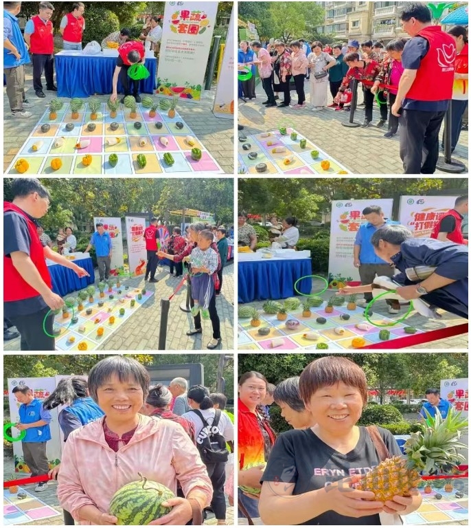 “打擂”成功的业主能够在果蔬套圈区域获得三次套圈的机会,套中蔬果即可当场拿走。小区业主在党员志愿者的陪同下,纷纷开始尝试。