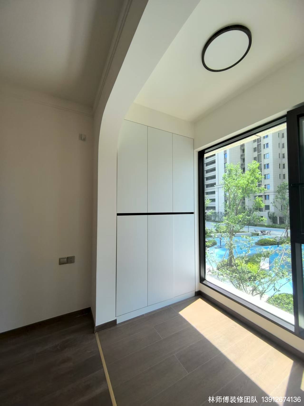 阳台改造更是让人眼前一亮!地面铺上木纹砖,与客厅地面无缝衔接,视觉上拓宽了空间,让阳台不再是孤立的 “小角落”。中间设计了一个精致的拱形门,线条柔和优美,为空间增添了几分浪漫气息。大大的落地窗前,摆放几盆绿植,阳光透过玻璃洒进来,绿植生机勃勃,在这里打造一个休闲休息区,看书、喝茶、晒太阳,惬意十足,轻松享受慢时光。