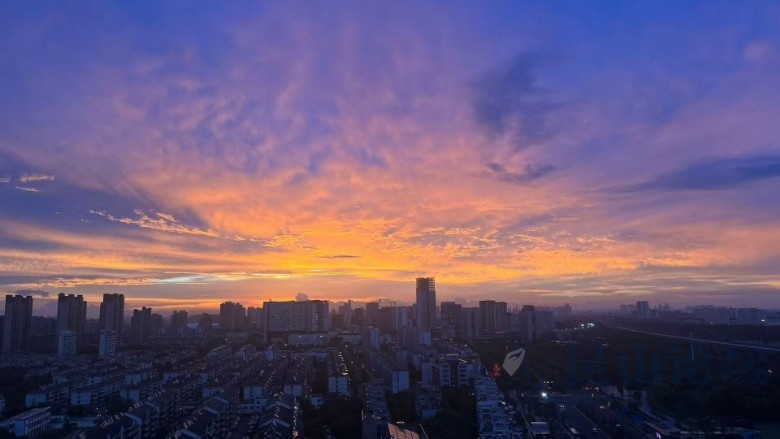一大早,就联想到小时候的一句话“朝霞不出门 晚霞行千里”。