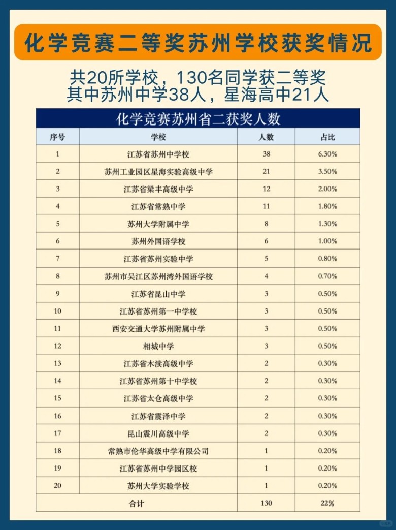 江苏省二等奖,其实没有多大用处,但二等奖的获奖人数,基本可以体现整个竞赛的群众基础。全省总共有600人获得省二等奖,苏州市130人。