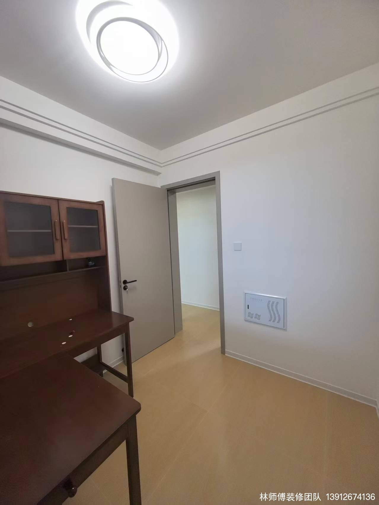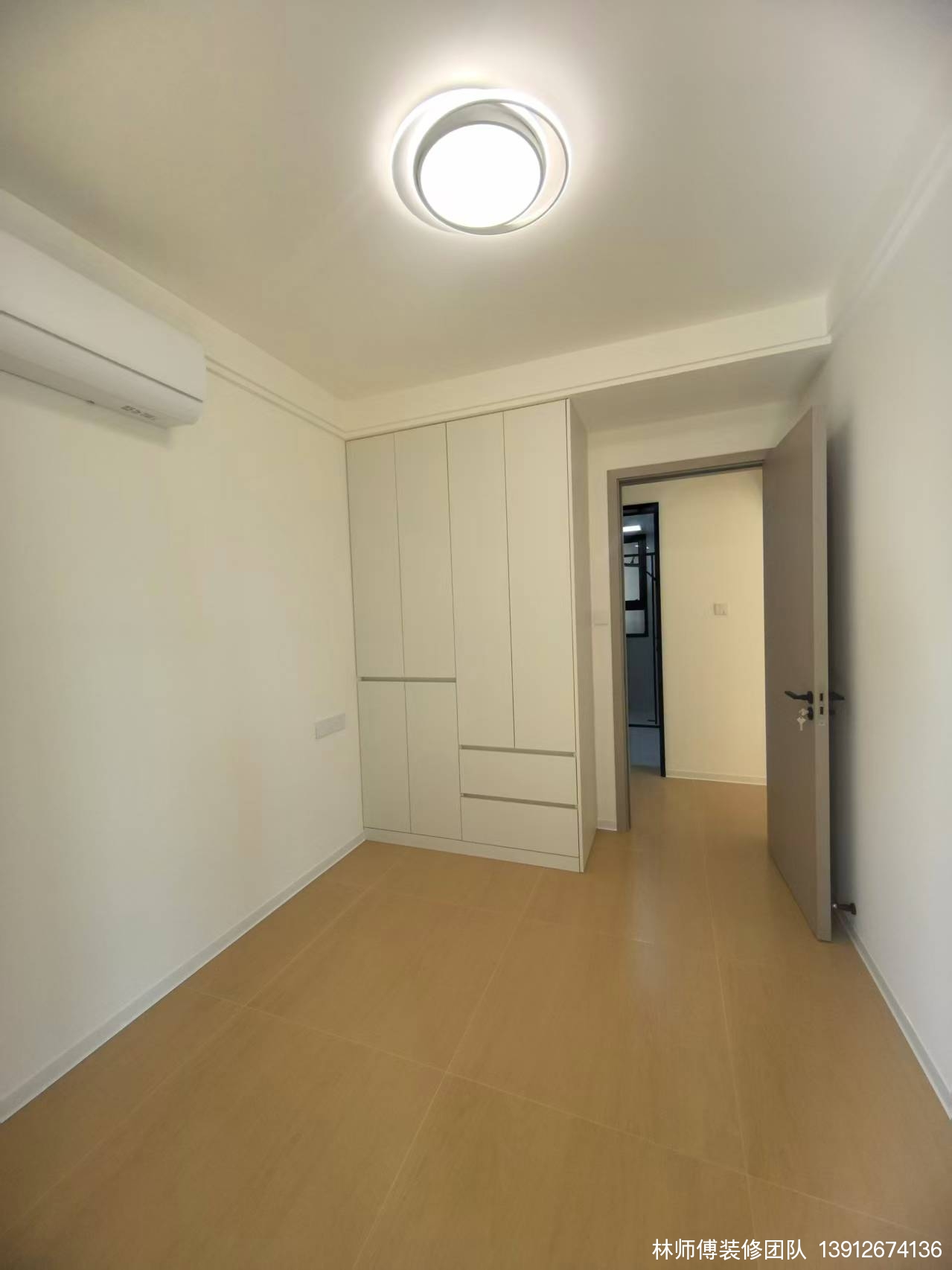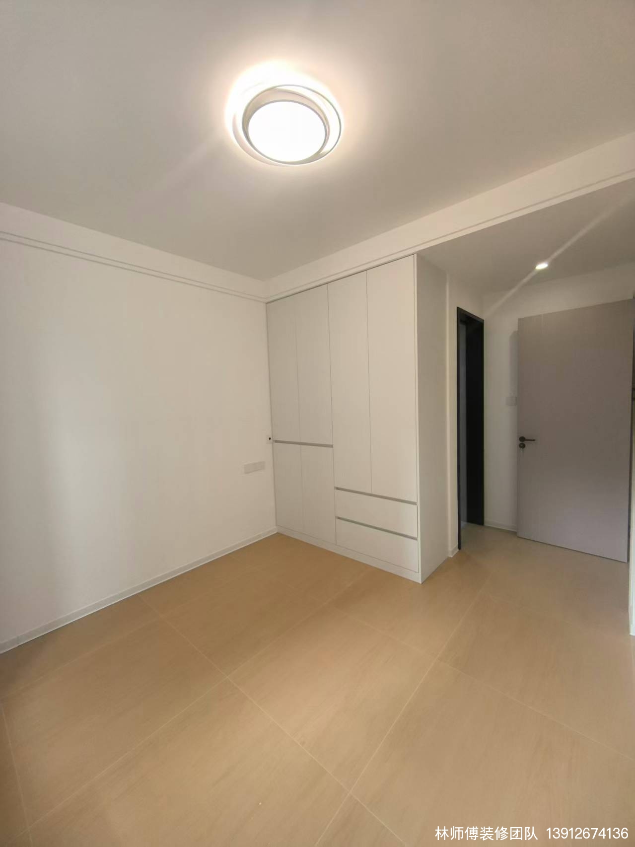 两个次卧保持了简约设计,双眼皮吊顶 + 奶油白墙面,其中一个次卧没有做固定家具,只留了基础照明和插座,后期可以改造成儿童房、书房,甚至客房,给生活留足弹性空间。