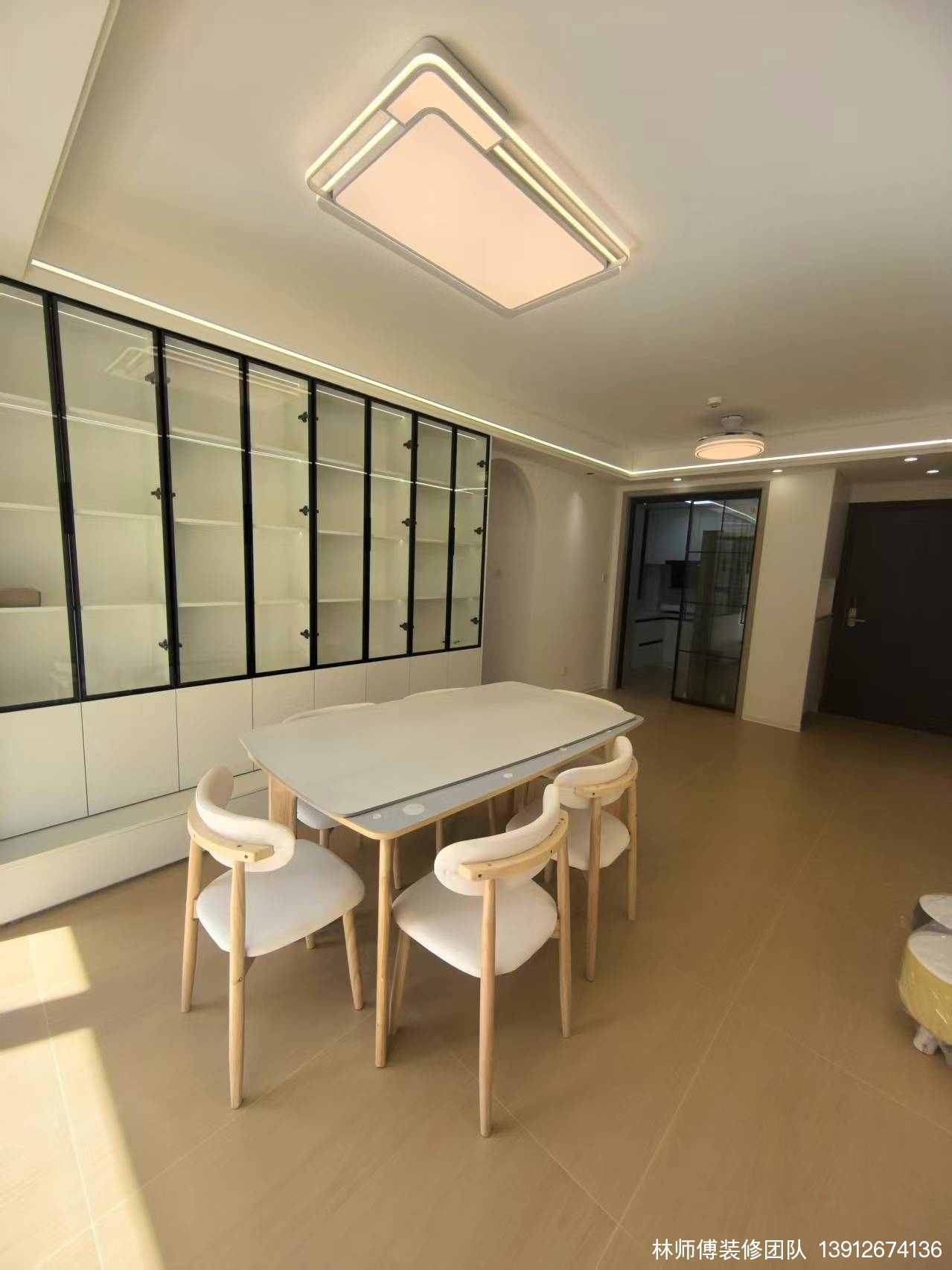 考虑到夏天吃饭怕热,装了一台风扇灯,吹风范围广又不占空间,冬天关掉风扇只开灯,暖光下吃饭更有温馨感。搭配一套奶白色的餐桌椅,椅子是软包设计,坐久了也不硌腰,平时一家人围坐吃饭、聊天,幸福感十足。