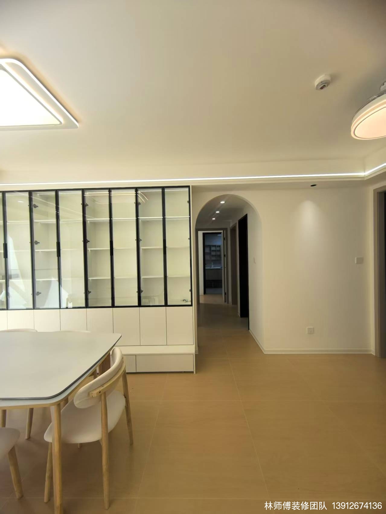 客厅放弃了复杂的吊顶,选了双眼皮吊顶,搭配一圈筒灯和灯带,晚上开灯后,光线柔和不刺眼,奶油风的浪漫氛围感直接拉满。因为家里人不常看电视,没有做传统的电视背景墙,而是定制了一面到顶收纳柜—— 中间留空区可以放装饰画或小摆件,而上半柜门用了透明玻璃,摆上好看的餐具、书籍,瞬间变成 “展示区”,简约又大气,还解决了客厅储物难题。
