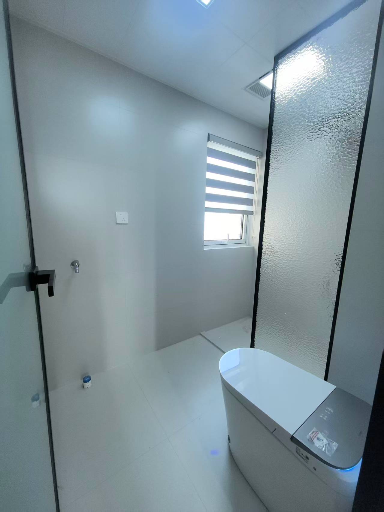 主卫用长虹玻璃做淋浴隔断,朦胧质感衬得空间更显通透,智能马桶,脚感翻盖、恒温座圈,冬天不用冻,夜起还有柔光感应灯,连起夜上厕所都少了几分 “冷硬感”。