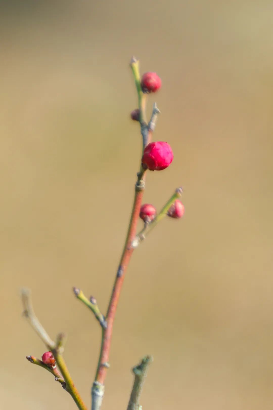 一个个红梅花苞缀满枝丫