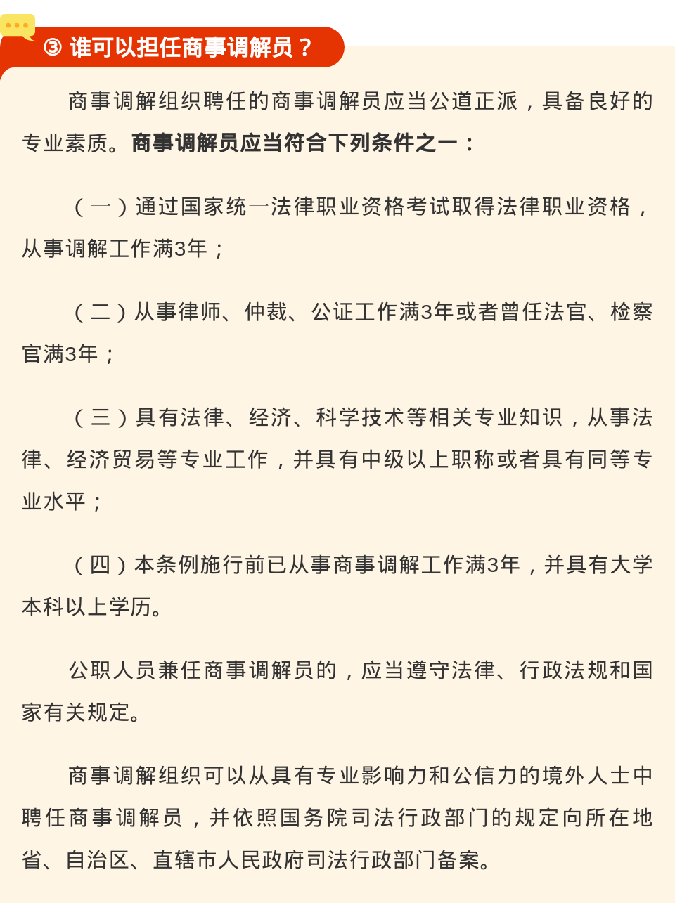 (五)有5名以上商事调解员和适当数量的专职工作人员。