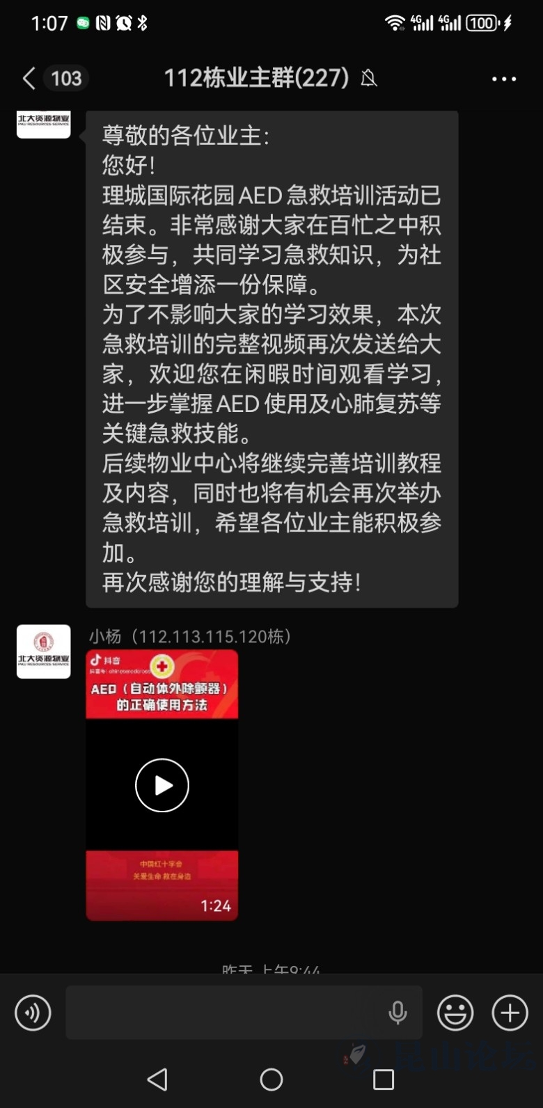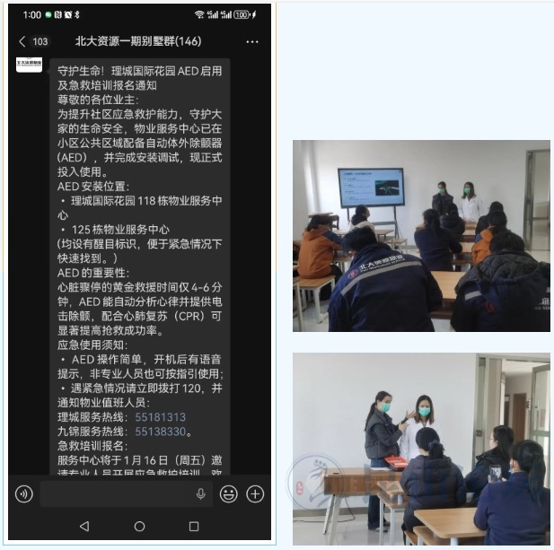 当意外突袭,你是否曾因不懂急救而手足无措?当身边人突发心脏骤停,你是否知道“黄金4分钟”里的关键抉择?1月16日,北大资源物业服务中心以责任为引,邀小区业主与内部员工共同参加了一场AED急救知识的讲解,用系统的理论科普,为社区安全防线筑牢认知根基。 培训中,物业工作人员与业主围绕社区应急场景深入交流,有效破除“急救难、不敢救”的认知壁垒,夯实“人人懂急救、应急有方向”的社区安全基础。为进一步巩固培训效果,帮助业主精准掌握AED使用规范,培训结束后,物业中心特地整理并向参与业主发送了AED使用教学视频,通过“理论学习+视频复盘”的形式,让此次培训有效破除部分参与者“急救专业门槛高”的认知误区,明确了非专业人士在应急场景中的行动方向,为社区构建“人人懂急救、应急有章法”的安全环境奠定了坚实基础。 北大资源物业服务中心始终将社区安全放在首位,此次培训是物业践行服务责任、完善社区应急保障体系的具体举措。未来,物业中心将持续优化社区安全服务,结合实际需求开展多元化应急科普活动,为行业社区应急服务标准化、常态化提供实践参考。[ 此帖被昆山市物协在2026-01-20 08:49重新编辑 ]