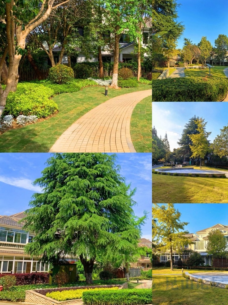 在这场品质焕新中,绿化是重塑家园底色与温度的关键。我们开展了一系列景观生态工程,从清理荒芜、平整土地,到规划设计、精心营造……一草一木的栽植,都承载着对美好生活的共同期待。截至2025年12月,我们已累计铺设麦冬4.2万平方米、草坪4.7万平方米,栽植草花2.2万株、乔木1286棵、灌木55.6万棵。这些不仅是绿化的覆盖,更是家园从 “凌乱”到“风景”的叙事。
