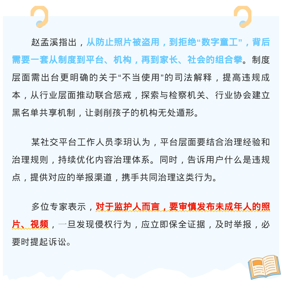 广州互联网法院综合审判三庭法官麦应华表示,在未成年人肖像权、名誉权侵权纠纷的审理中,应结合网络侵权特征以及未成年人身心发育特点,给予未成年人特殊、优先保护,适当加大惩治力度,提高侵权行为的违法成本。