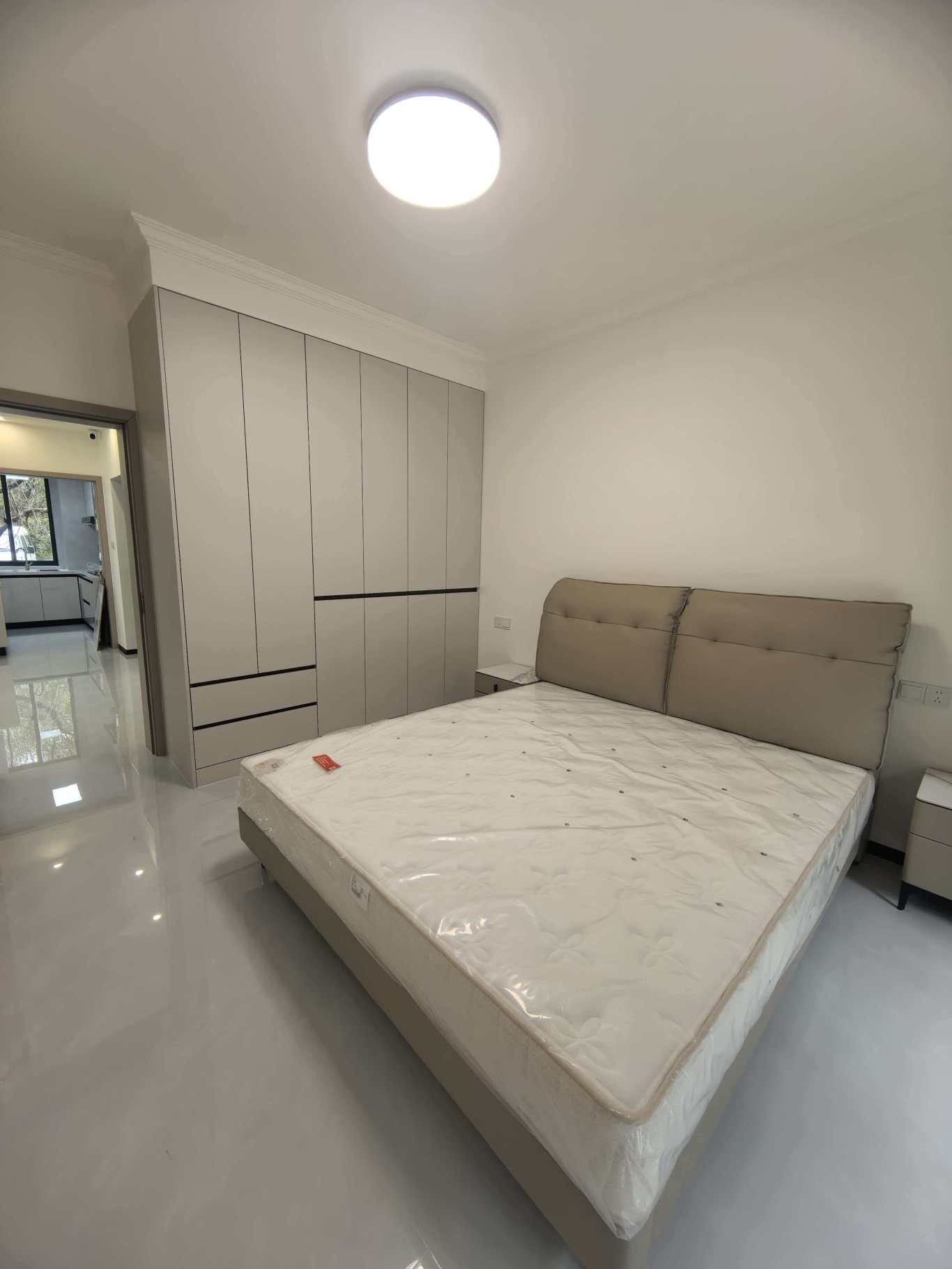 次卧作为 “弹性空间”,同样采用通顶衣柜 + 极简设计,可作为孩子成长房、长辈客房,也能成为独处小天地,灵活适配家庭不同阶段需求。