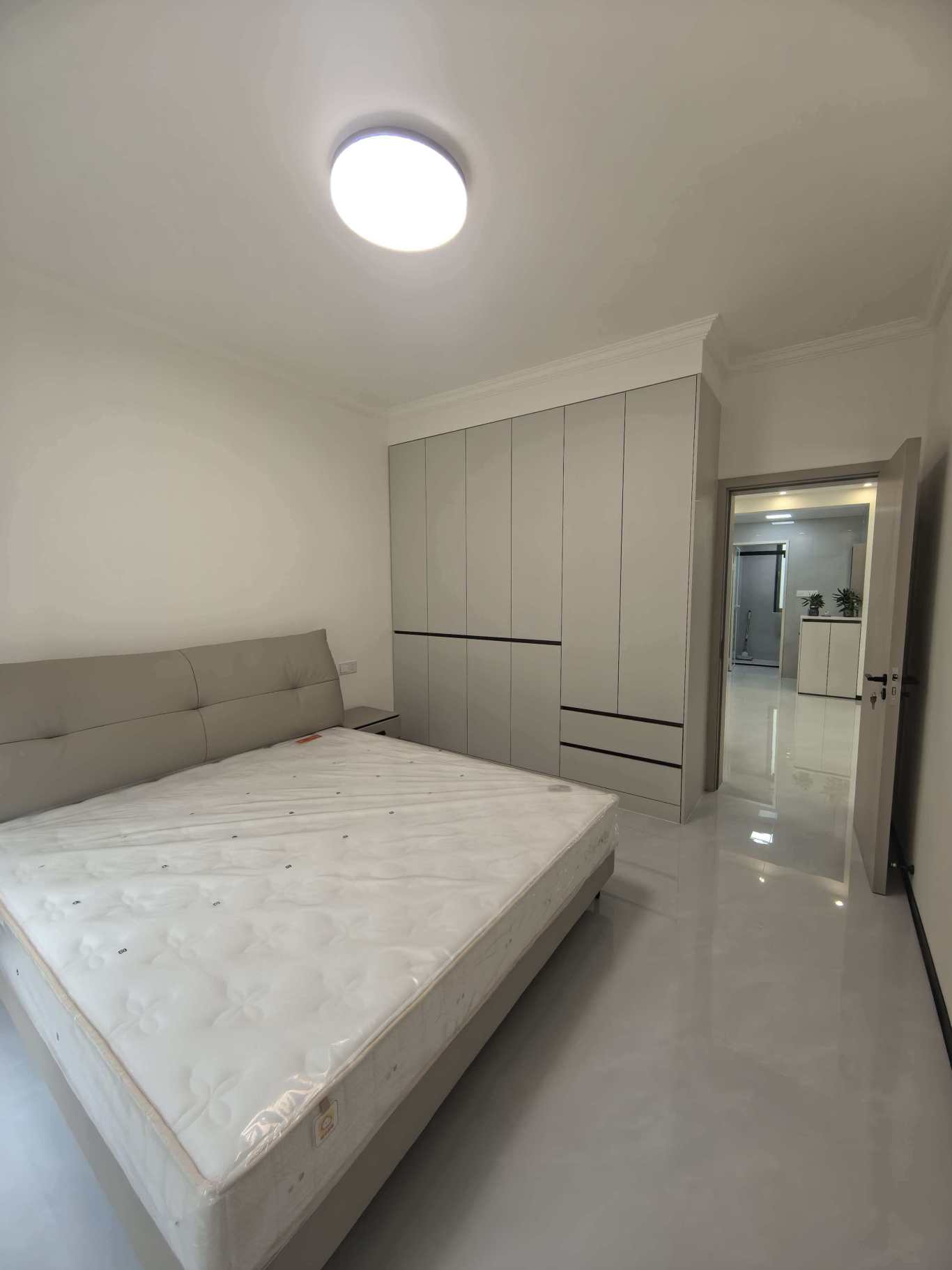 主卧室整面通顶衣柜,把衣物、被褥、杂物统统藏起,只留干净墙面与充足睡眠空间;浅色系软装搭配简约吸顶灯,营造宁静治愈的氛围,让成年人的疲惫在这里被温柔治愈。