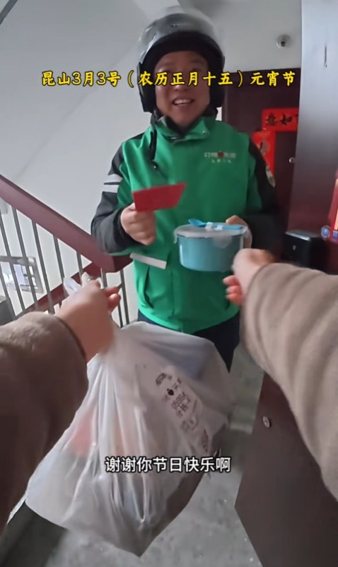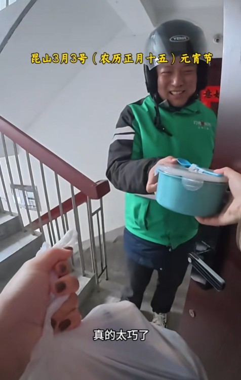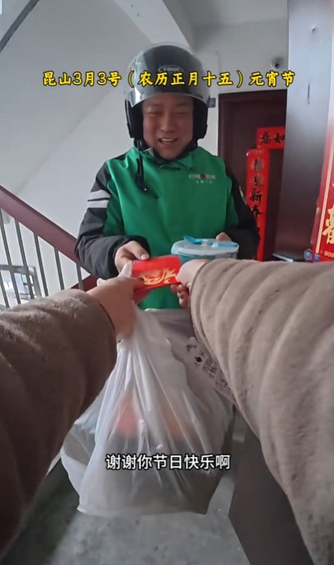 偶然间刷到的昆山的一个视频博主,虽然知道是要拍摄的,但是对于视频博主的善意和收到这份礼物的外卖小哥的开心,确实实实在在的