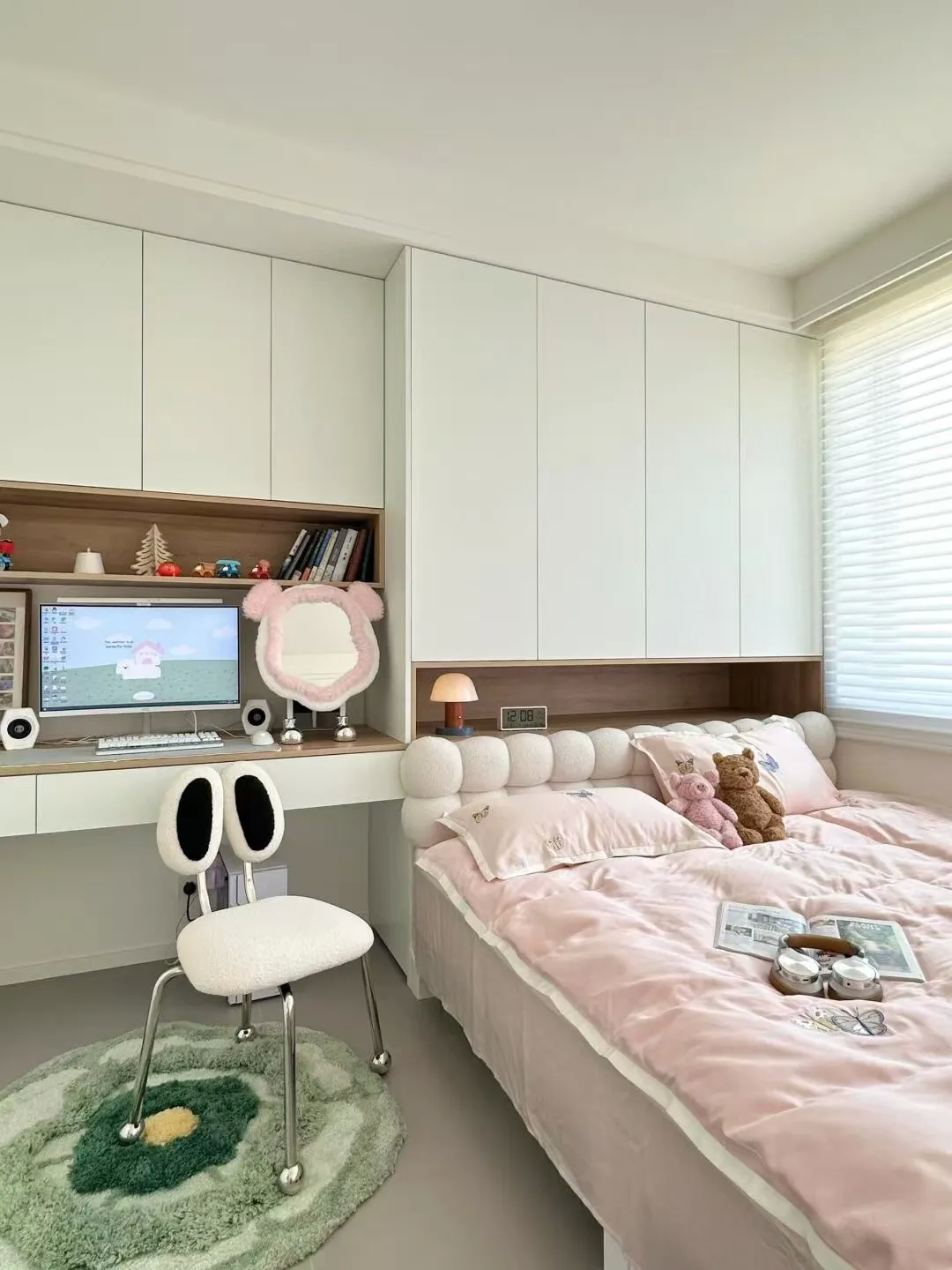 我们也可以通过不同颜色来创造出更多的效果,例如绿色和蓝色可以创造出一种自然、清新的感觉。而灯光的选择以明亮的光线为主,可以设置学习阅读模式、玩耍模式和睡眠“小夜灯”模式,有仪式感的灯光,能让孩子更爱自己的专属小天地。