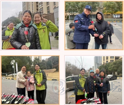 活动现场,我们统一身穿红马甲,面带温暖笑容,手持一束束鲜花,静候各位女神的到来。无论是清晨出入小区的女性业主、在园区休闲的女性长者,还是坚守岗位的女性工作人员,都收到了我们亲手送上的鲜花与“女神节快乐”的温馨祝福。