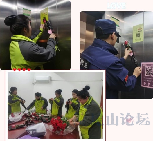 活动当日,物业服务中心的工作人员早早忙碌起来,将一支支娇艳的玫瑰整理包装,点缀上精致的丝带,每一朵鲜花都承载着满满的心意。每一步电梯里都有工作人员精心布置的节日氛围。