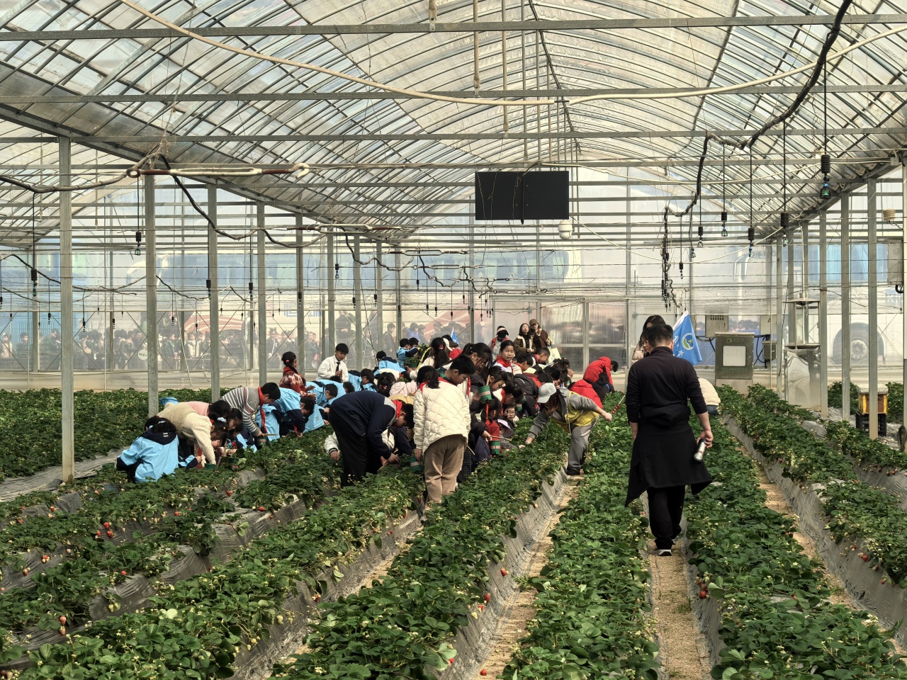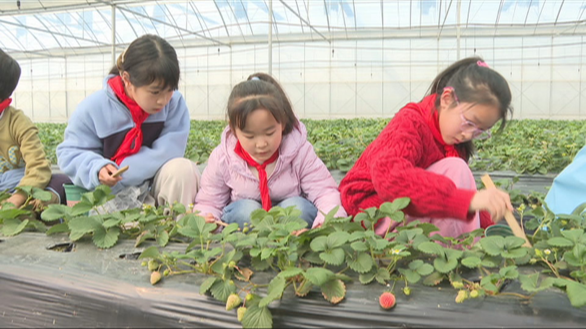 现场,幼儿园的小朋友们钻进了蓝莓大棚。一簇簇蓝莓花在枝头绽放,引得孩子们纷纷伸手触摸。在工作人员的讲解下,孩子们了解了蓝莓的生长周期和智能灌溉系统。随后的草莓采摘环节更是欢声笑语不断,孩子们小心翼翼地摘下红艳艳的草莓,捧在手心如获至宝,不少小朋友忍不住当场品尝,脸上洋溢着劳动的甜蜜。