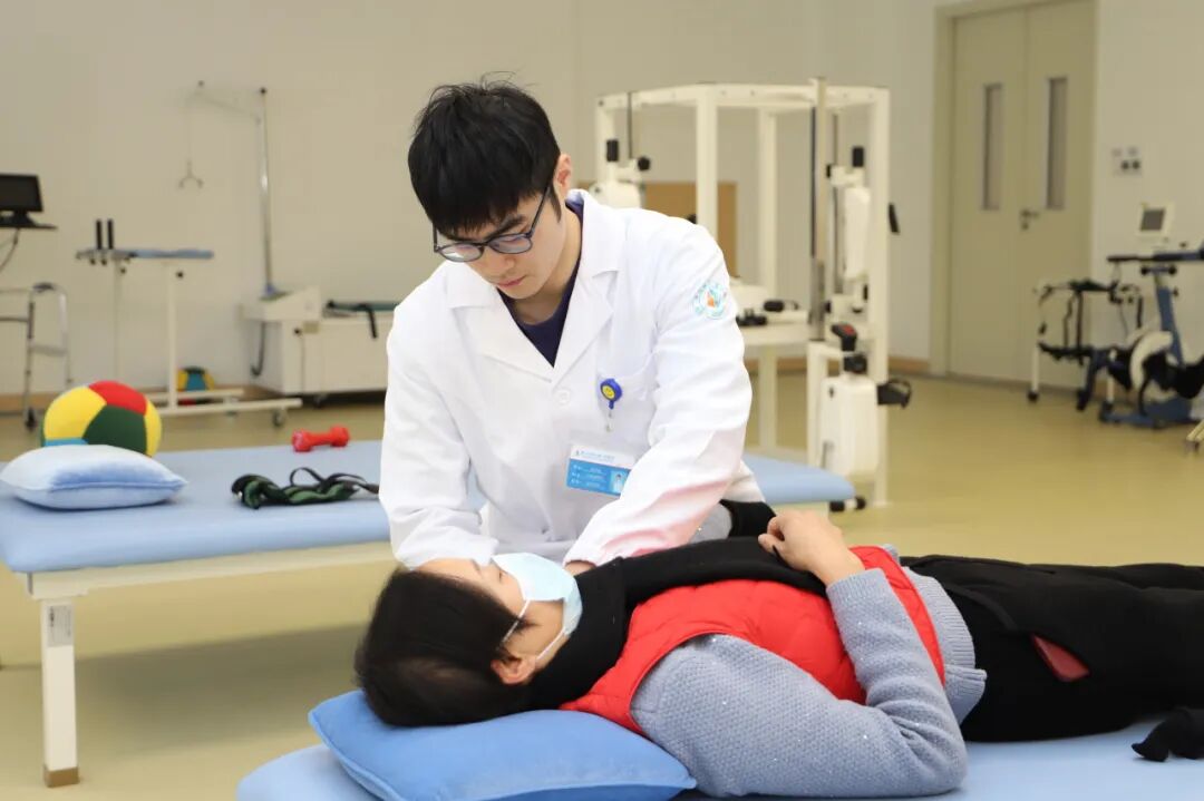 79岁的蔡阿姨因外伤导致左股骨颈骨折,在上海医院完成人工股骨头置换术,术后为尽早恢复肢体功能,得知淀山湖人民医院有上海市第一康复医院常驻康复治疗师,便选择入住医院的外科病区接受住院康复。上海市第一康复医院康复治疗师张北辰和高宇超为其量身定制个性化康复方案,开展关节松动训练、平衡功能训练、推拿等针对性治疗,并耐心指导日常康复锻炼动作。