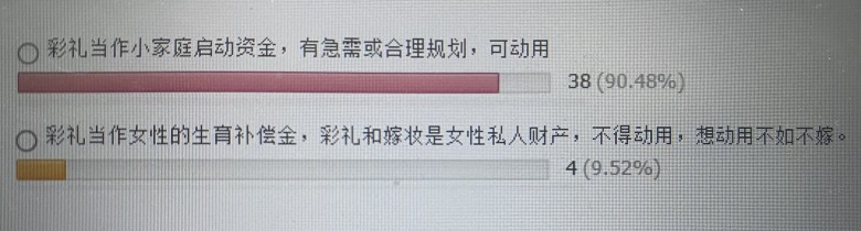 网上一直说江西彩礼高,其实我感觉哪里都是一样的,有高有低的,最高的又不是江西的。我这一辈的人,很多都是O彩礼出嫁的。但是恰恰是我们这批O彩礼出嫁的,后来因为O彩礼的事情受到的白眼最多,男方家里也不会因为你没要彩礼高看你一眼,他们家只会感觉他家的男孩有本事,不要彩礼就能娶到媳妇。所以我反对O彩礼。